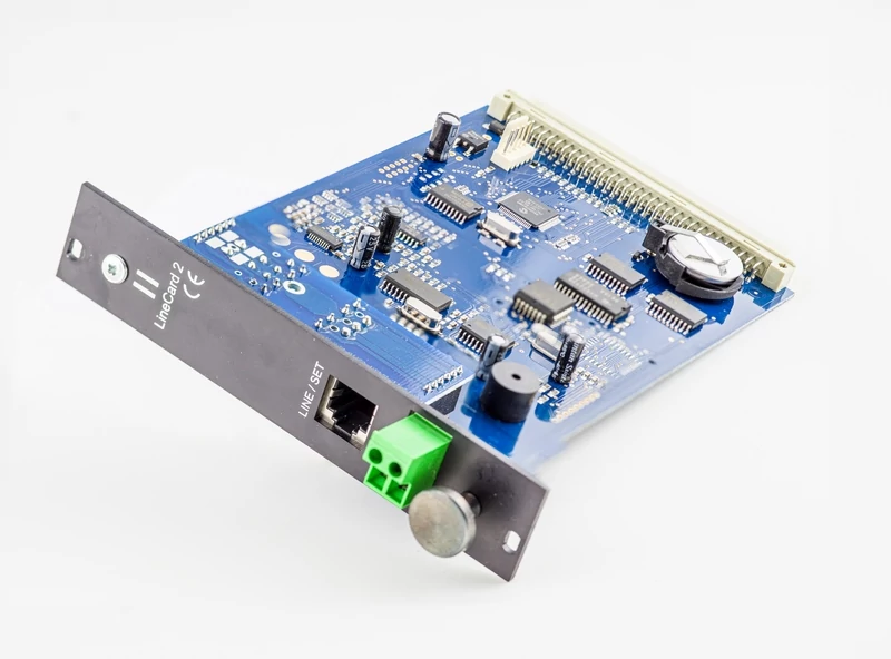 Il ricevitore dispone di 8 slot per collegare le schede telefoniche LC. Le schede di linea LC sorvegliano, ognuna, una linea telefonica. Ogni scheda della linea telefonica ha memoria per memorizzare fino a 2000 eventi o ID chiamante. La funzione ID chiamante è incorporata; il numero del chiamante è memorizzato e può essere trasmesso al computer di sorveglianza. Le schede di linea supportano anche la comunicazione audio bidirezionale. Le schede di linea vengono monitorate costantemente dalla CPM. Tutti i guasti della scheda linea vengono visualizzati immediatamente sul display LCD e trasmessi al computer di sorveglianza. La scheda di linea sorveglia anche la connessione con la CPM: se rileva problemi si commuta automaticamente in modalità di funzionamento autonoma. In questo caso continua la ricezione degli eventi memorizzandoli nella propria memoria. Tutti gli eventi ricevuti verranno inviati automaticamente alla CPM quando la connessione viene ripristinata.